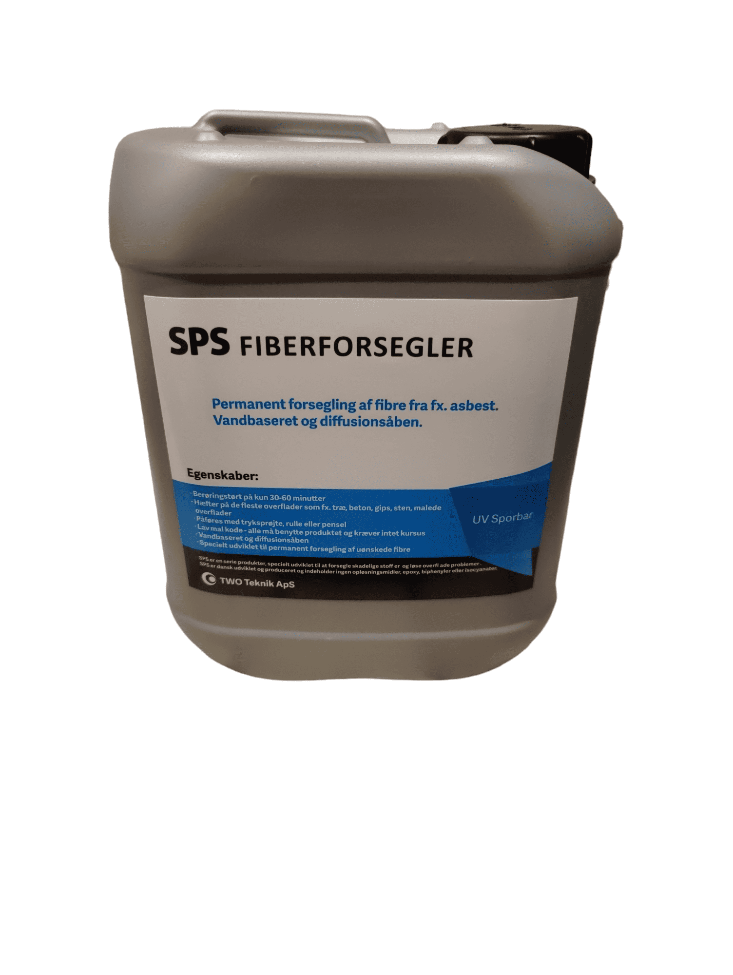 SPS Fiberforsegler er et vandbaseret produkt der permanent forsegler asbestfibre til overflader af enhver art. Forseglingen er permanent (tåler ikke mekanisk slid) og er samtidig meget diffusionsåben. Asbestforsegleren kan efterfølgende kvalitetssikres med UV lampe da forsegleren indeholder UV stof.